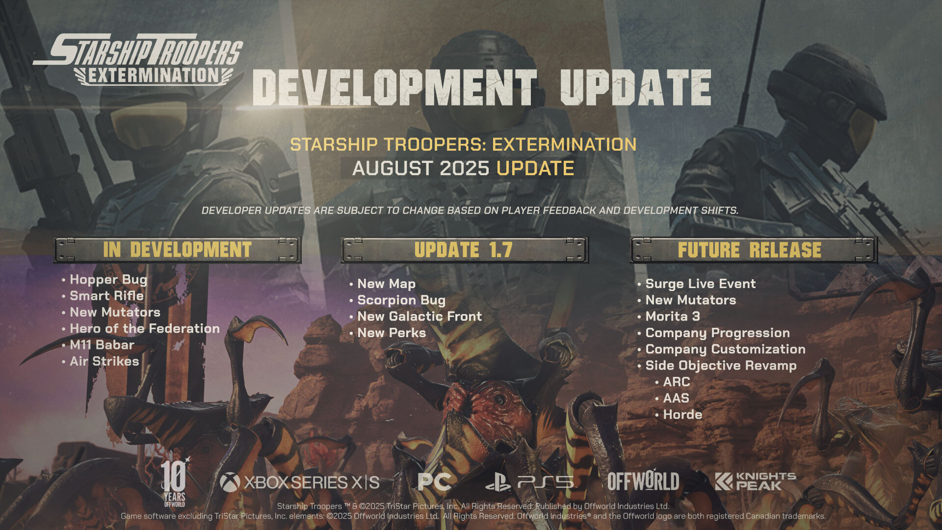 We’ll be revealing more details about Update 1.7 and beyond this September. Until then, gear up, stay alert, and as always…Kill every last one of them dirty Bugs!